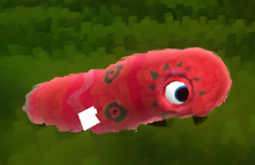 Whirlms are very simple in appearance, bright orange in color with red and green patterns. Their head and body are all part of one shape, making them look like a short round worm.