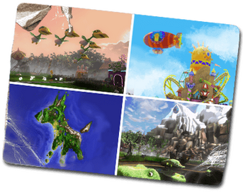 Around Piñata Central are lots of gardens. And the people who live on Piñata Island have learned how to care for the land so the wild Piñata will stay in their gardens and fill up with candy. Candy-filled piñata can then be sent up to Piñata Central, so each party receives the piñata that suits it best.